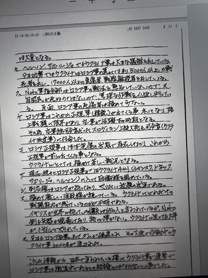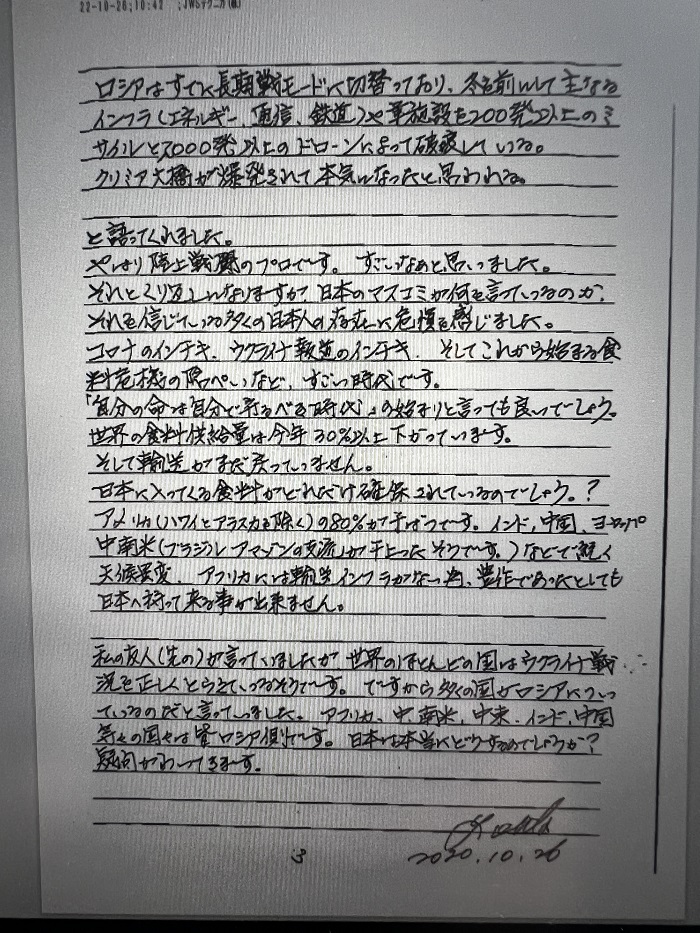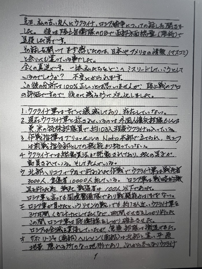 太田先生(元海上自衛隊)からファックスが届きましたので