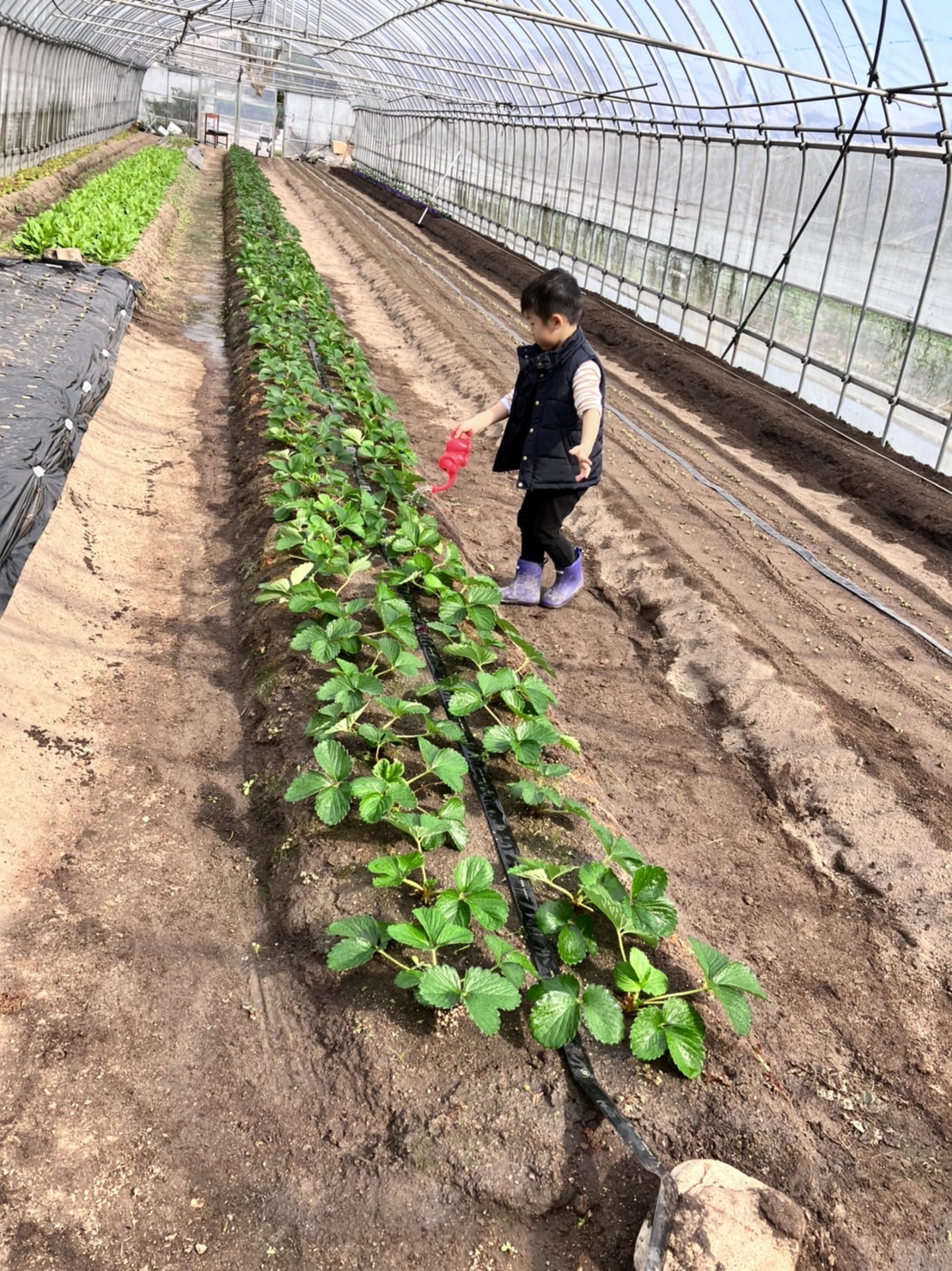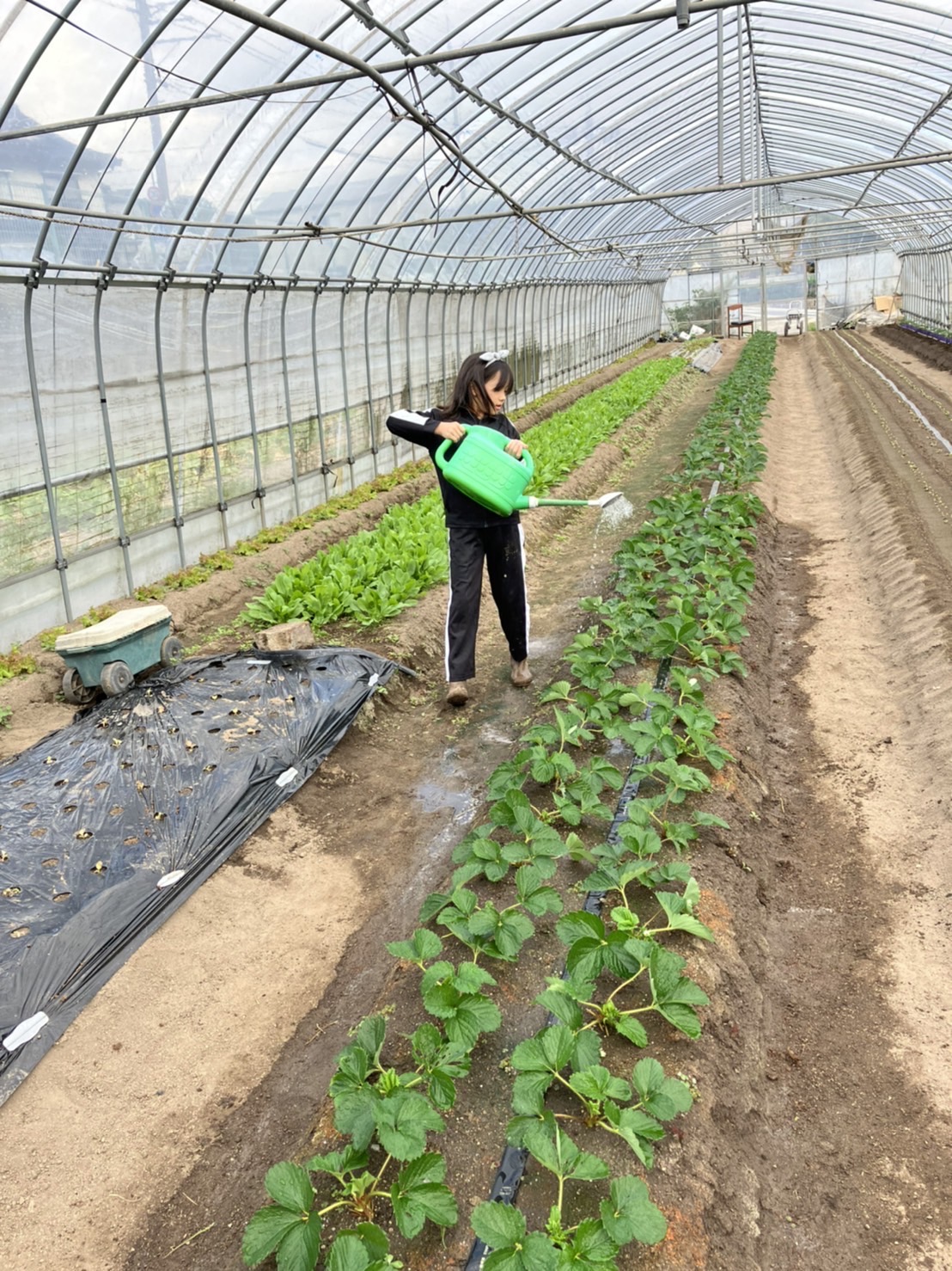 「いちごちゃんにお水やりに行くよ!」