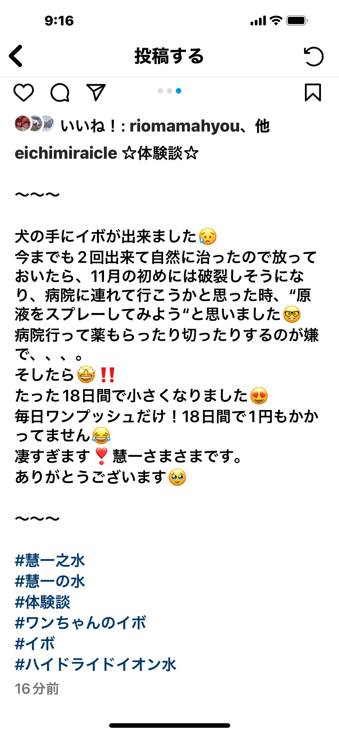 「昨日1週間ぶりくらいに奇跡の水で入浴したら睡眠が全然違いました😱😱😱