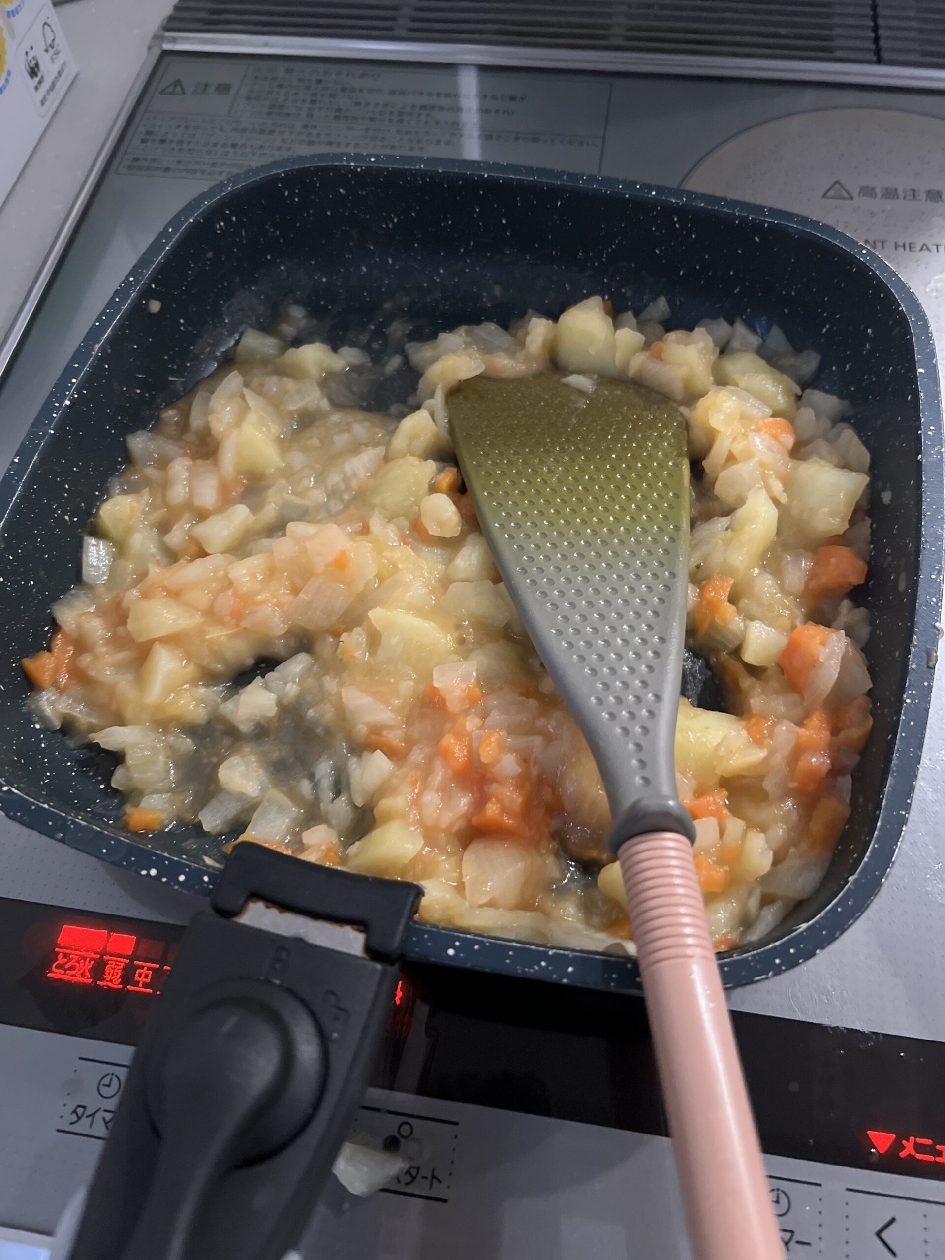 息子は嫌いなものが無いから楽なんじゃが、玉ねぎ、人参、トマトが嫌いな娘の為にギリギリまで練りこみ、ペースト状に。出来上がったのが↑トマトカレー(⌒∇⌒)と特性お味噌汁。