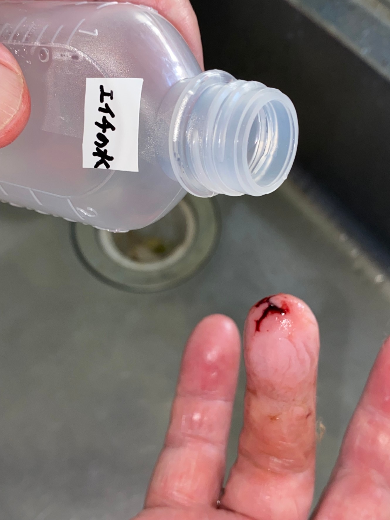 怪我をされて、咄嗟に原液のえいちの水を掛けて2日経った写真です。