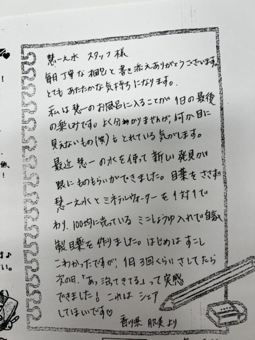 「慧一之水スタッフさま