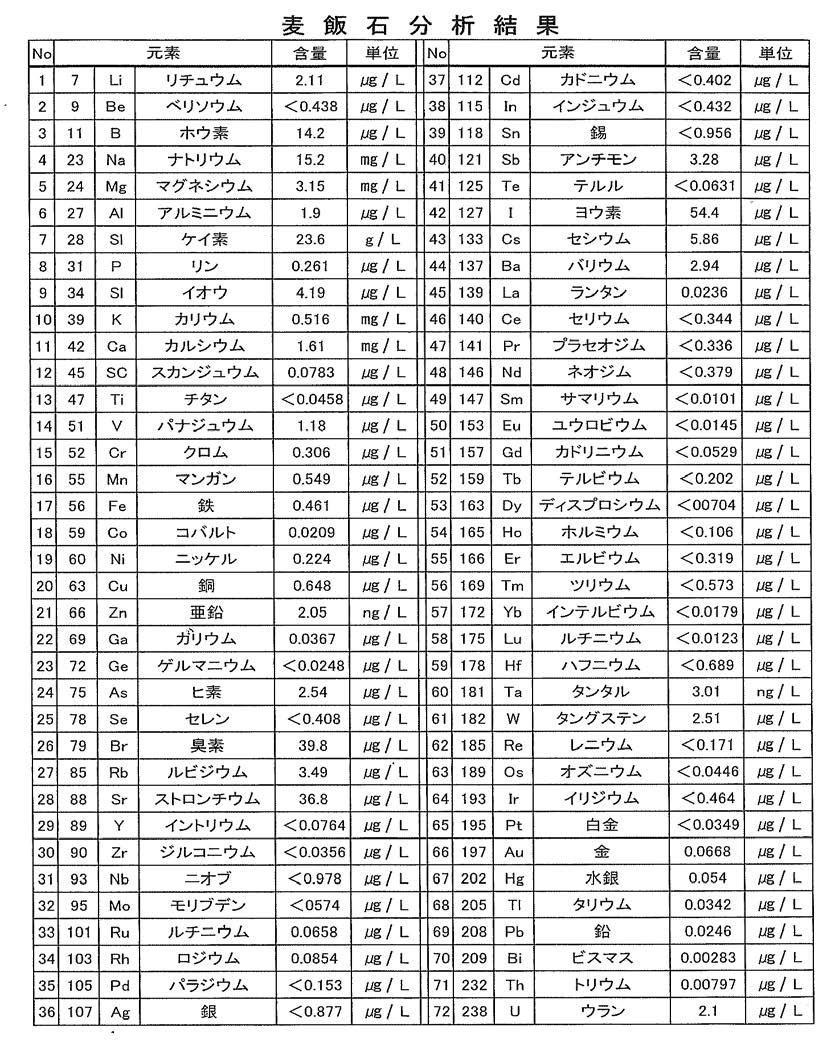 ・別表は、水道水2ℓに多元素共存鉱石(40μ)を0.5g、