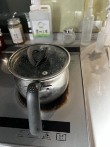 2リットルのお水に慧一之水をキャップ1杯入れ、ミネラルの粉を耳かき3杯ほど入れて沸かします!