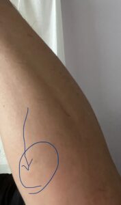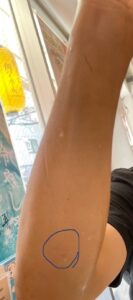 ちょっと前に、もんじゃ焼きで火傷したものがこれ↓