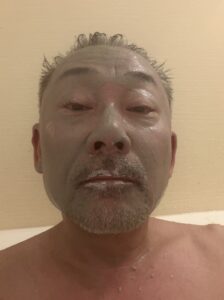丁度よく頃合いを見て顔に塗りたくっていきます。(私は手で塗りたくっていますが、家族は刷毛を使うと思います。)